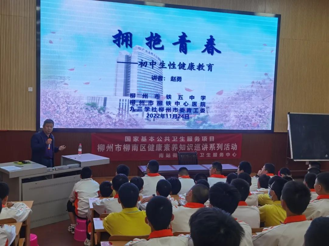 2022年12月1日是第35个世界艾滋病日。为帮助青少年正确认识青春期自己身心的巨大变化,健康地度过美好的青春期,2022年11月24日,应柳州市铁五中学邀请,九三学社柳州市委常委、青工委副主任、柳州市健康科普专家库专家、柳铁中心医院泌尿外科学科带头人、主任医师赵勇和妇科、预防保健科专家一起再次走进校园。