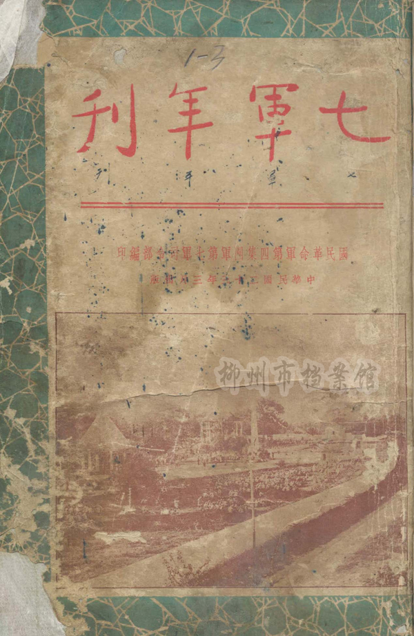 《七军年刊》一书是1934年七军驻防柳州时编着。抗战全面爆发后,七军北上抗日,先后参加淞沪会战、徐州会战、武汉会战、随枣会战等战役。《七军年刊》所记载的是该部在柳州的训练、生活各种情形。图为《七军年刊》封面。
