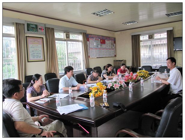 图为在县建设局座谈的情景,县建设局长韦军(右排一)、副局长陆丰华(右排二)在座谈会上。